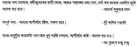 As far as good Rabindra Sangeet is concerned, it is basically the bold presentation of the thought with a typical melody in the voice … you have been blessed with both these abilities … I am proud that you are my daughter-in-law.